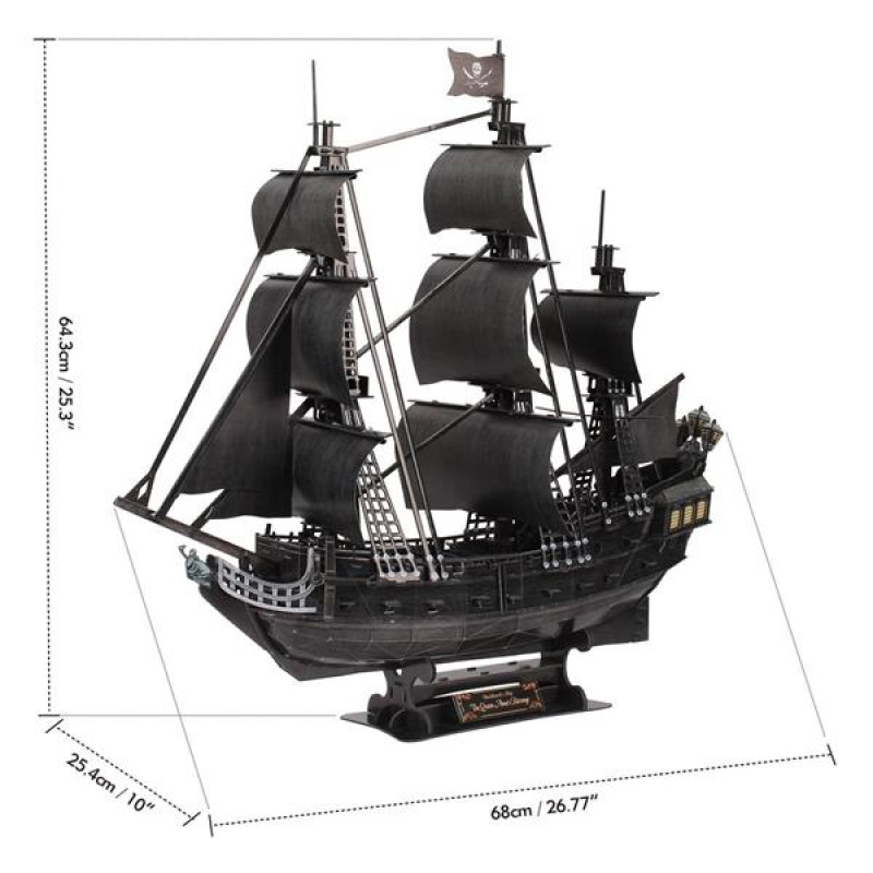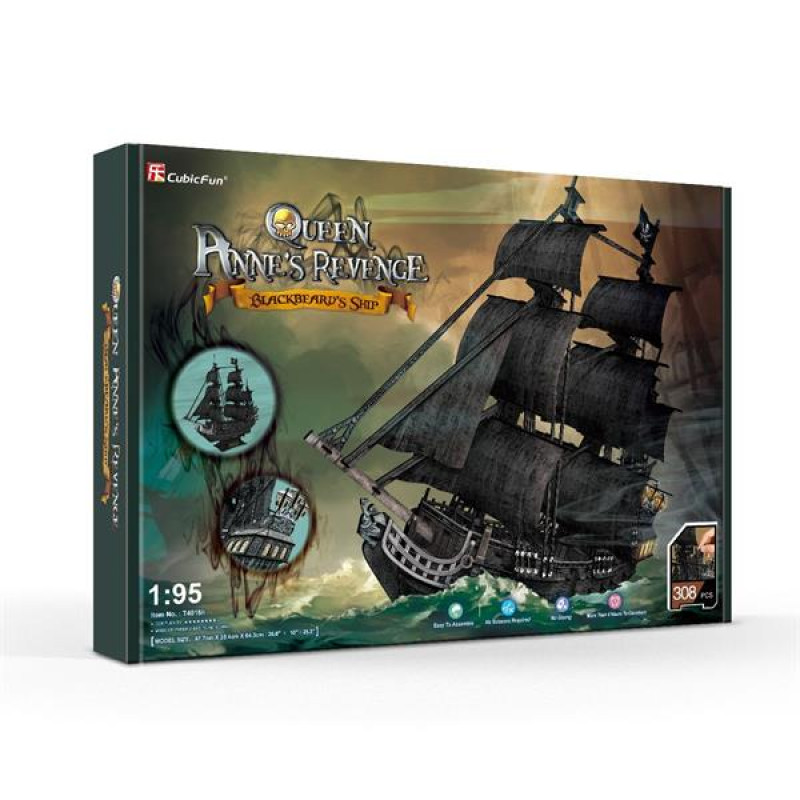 3D пазл CubicFun Корабель Чорної Бороди Помста Королеви Анни (великий) познайомить дітей із легендарним судном піратів, яке наводило жах на торгові шхуни у минулому.Складена модель з історичною точністю відтворює справжній корабель у масштабі 1:95. Корабель із чорними вітрилами прикрасить інтер’єр: матиме чудовий вигляд на столі або книжковій полиці.З08 деталей набору з пінокартону міцно скріплюються між собою без будь-якого додаткового фіксування. Конструктор має високу деталізацію і реалістичність.Тривимірна головоломка підійде творчій і допитливій дитині, яка цікавиться судноплавством чи історією. Розвиває уяву, просторове мислення, точність роботи руками.3D-пазли CubicFun дарують дітям цікаве дозвілля без гаджетів, знайомлять з основами моделювання та конструювання.Розмір зібраної моделі: 68 х 25 х 64 см. Рекомендовано для дітей від 6 років.