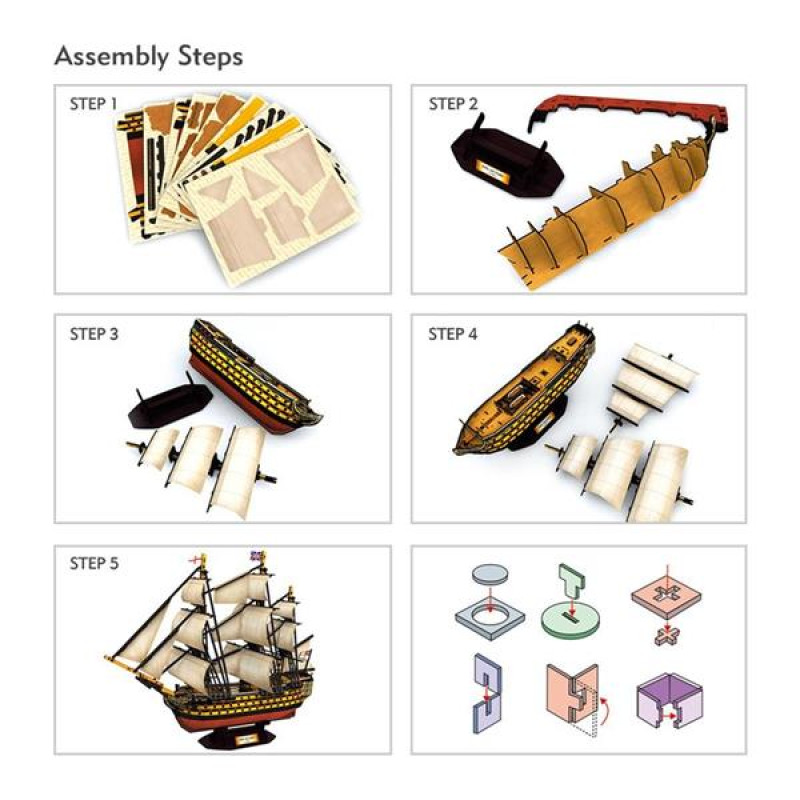 Королівська знахідка для колекціонерів та маленьких любителів морських суден 3D-конструктор HMS VICTORY від CubicFun. Тривимірна головоломка розповість історію одного з найважливіших елементів англійського флоту. Бойове судно повинне 104 гармати на борту і брало участь у запеклих боях на морі. Сьогодні корабель є знаковим експонатом музею Портсмут.Перевагою дитячого конструктора CubicFun є знайомство школярів із захоплюючою історією суднобудування. Кожен екземпляр пройшов дивовижне життя, повне пригод, битв та відкриттів.Пазли збираються без використання клею та гострих інструментів. Дрібні деталі тренують моторику пальців, а процес збирання розвиває логіку. Непосиди стають усидливими та уважними.Особливості:- рекомендується дітям віком від 7 років;- 189 деталей із пінокартону;- розмір парусного судна: 46x21x57 см.Набори бренду дитячих конструкторів CubicFun серії T захоплюють морською тематикою та складними завданнями. До такого хобі точно буде небайдужа вся родина!