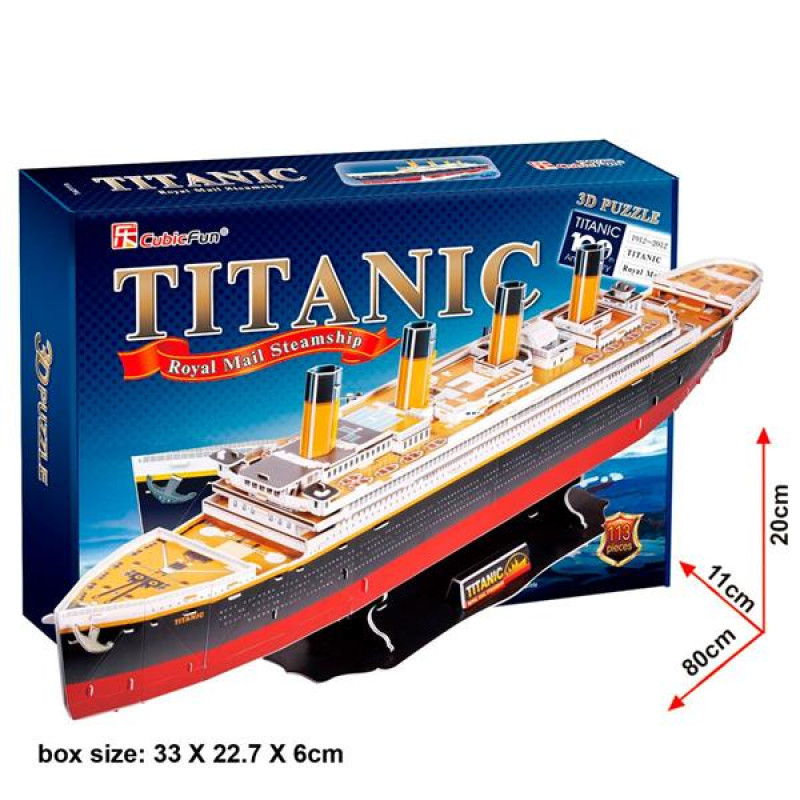 3D пазл Титанік дозволяє побудувати реалістичну об'ємну копію найбільшого у свій час круїзного лайнера. 113 деталей набору з пінокартону міцно скріплюються між собою без будь-якого додаткового фіксування. Складання займає приблизно 200-220 хв.Тривимірна головоломка підійде творчій і допитливій дитині, яка цікавиться судноплавством чи історією. Конструктор має високу деталізацію і реалістичність. Розвиває уяву, просторове мислення, точність роботи руками.3D-пазли CubicFun дарують дітям цікаве дозвілля без гаджетів, знайомлять з основами моделювання та конструювання.Розмір зібраної моделі: 80 х 11 х 20 см. Рекомендовано для дітей від 6 років.