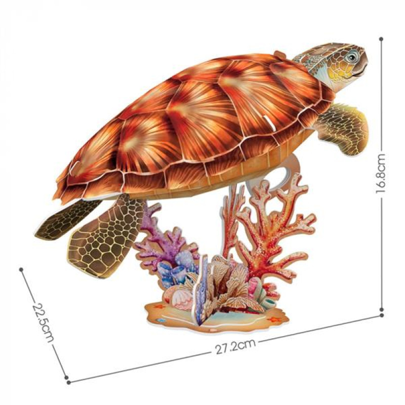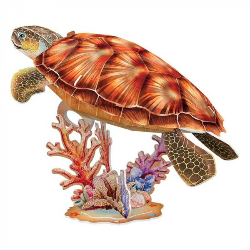 Розвивальний 3D пазл CubicFun для дітей та дорослих у вигляді морської черепахи з підставкою-декором. Морська черепаха оснащена язичком, який може змусити ласти черепахи рухатися, наче вона плаває під водою. Високий рівень деталізації. Деталі надійно кріпляться між собою без додаткової фіксації (без клею, ножиць), створюючи єдину конструкцію. Стильний дизайн. Відмінно розвиває дрібну моторику.Кількість деталей: 31 шт.