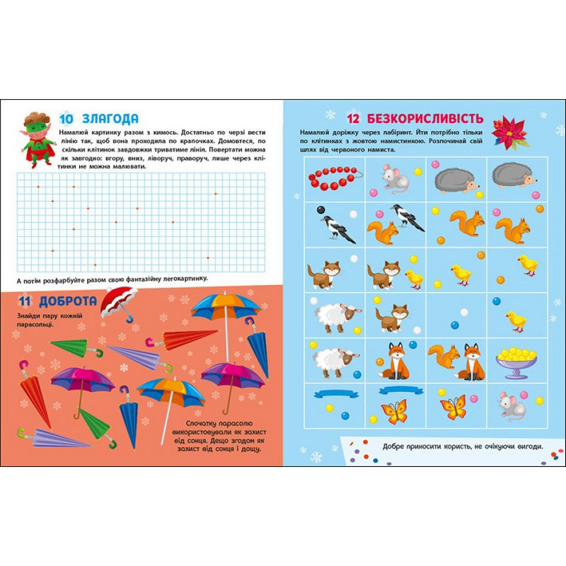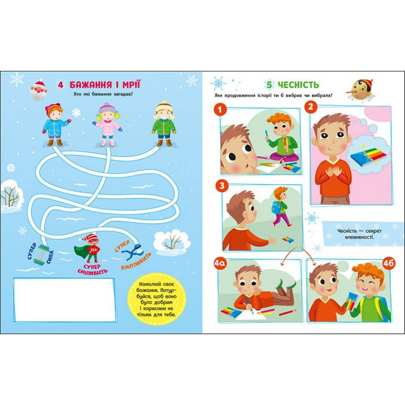 Адвент-календар очікування улюбленого свята. Прикрашаємо святкову ялинку іграшками-наліпками, які символізують чемну поведінку, знаходимо за таким же зображенням ігрове завдання у альбомі активностей і цікаво проводимо час. День за днем ялинка стає все більш нарядною і до настання свята Миколая заграє різними яскравими іграшками-символами.