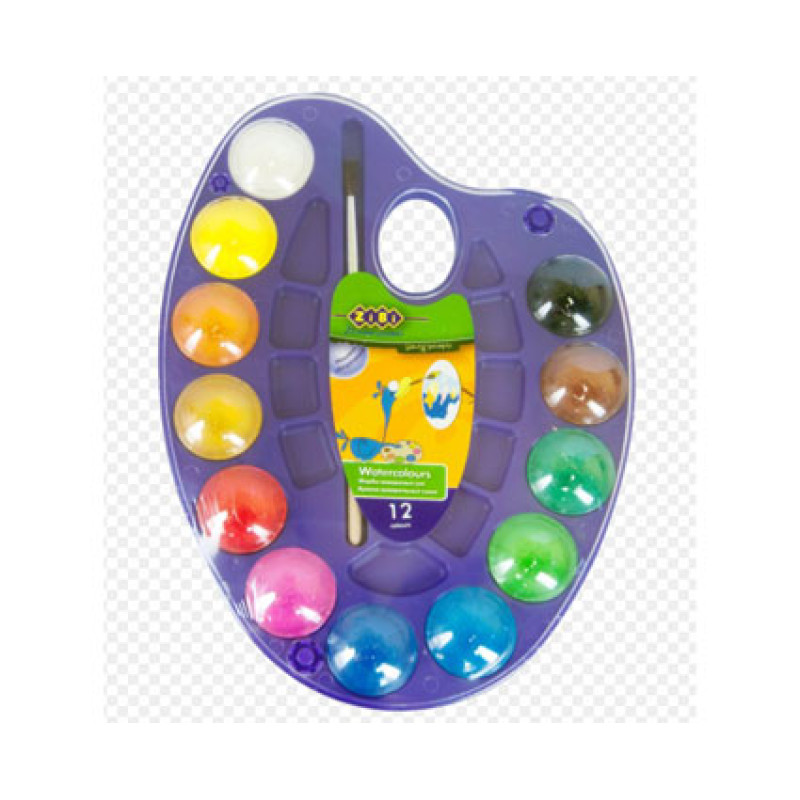 Акварельні фарби на палітрі, 12 кольорів, натуральний пензель, фіолетова, KIDS Line ZB.6558-07