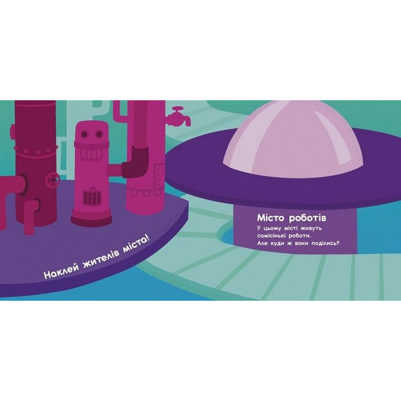 Маленькі книжечки серії "Альбомчик-наліпчик" — це відкритий світ, який дитині пропонують заселити дивовижними істотами. Зробити це стає можливим завдяки наліпкам, яких тут аж 40 штук. Кожний розгорт книжки "Чарівні світи" — це окрема локація, яку слід заповнитимісто роботів, замок монстрів, печери дракончиків чи планета прибульців. А в самому кінці на маленьких фантазерів чекає гра, що випробує їхню увагу.
