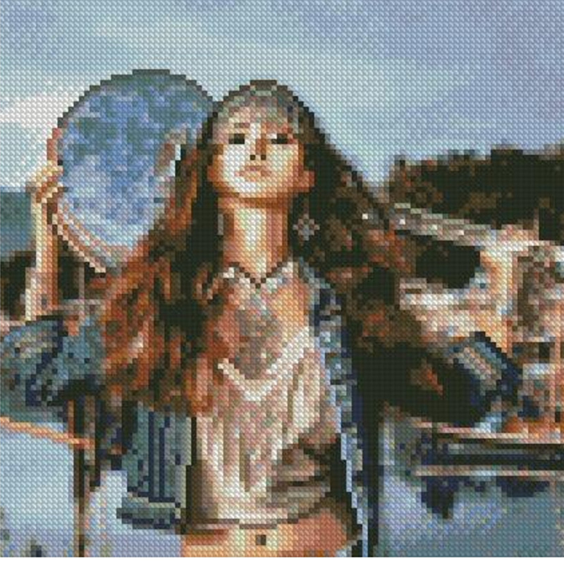 Алмазна картина Дівчина з мандалиною Strateg 30х30 см