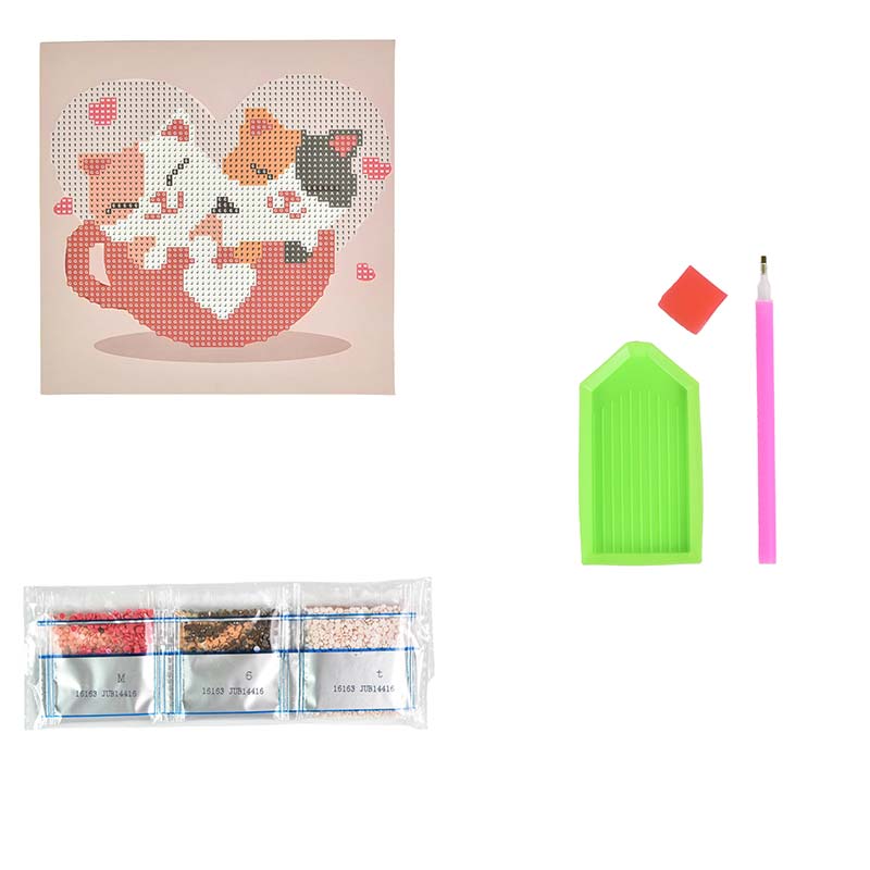 Алмазна картина Котики у чашці Strateg 18х18 см JUB14416