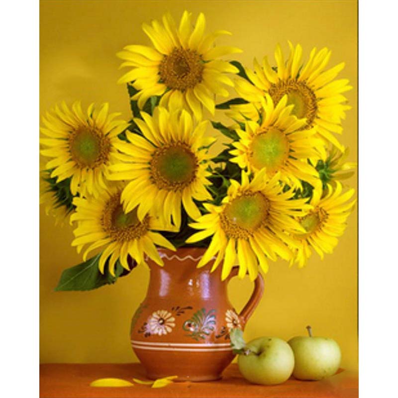 Алмазна картина Соняшники у глиняному глечику Strateg 40х50 см SK86005
