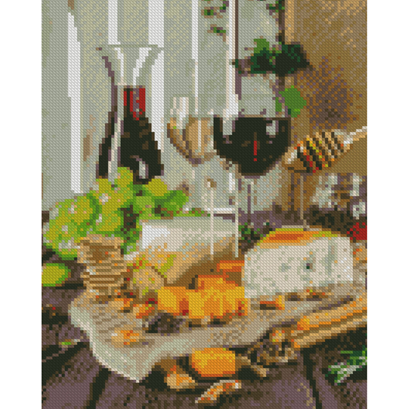 Алмазна картина Вино та сир Strateg 30х40 см HX503