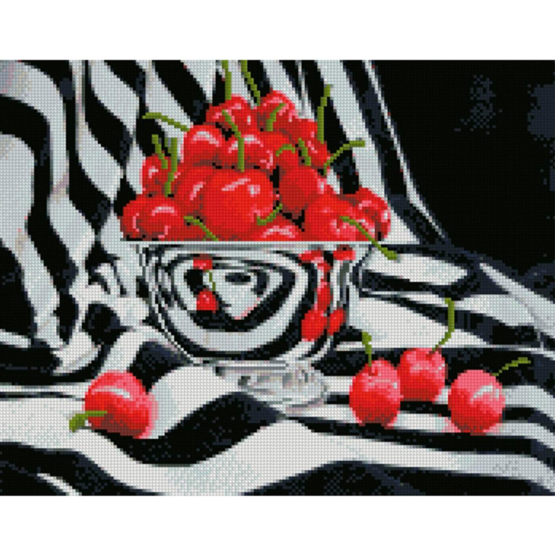 Алмазна картина "Вишня на чорно-білому фоні" 40х50 см FA40815