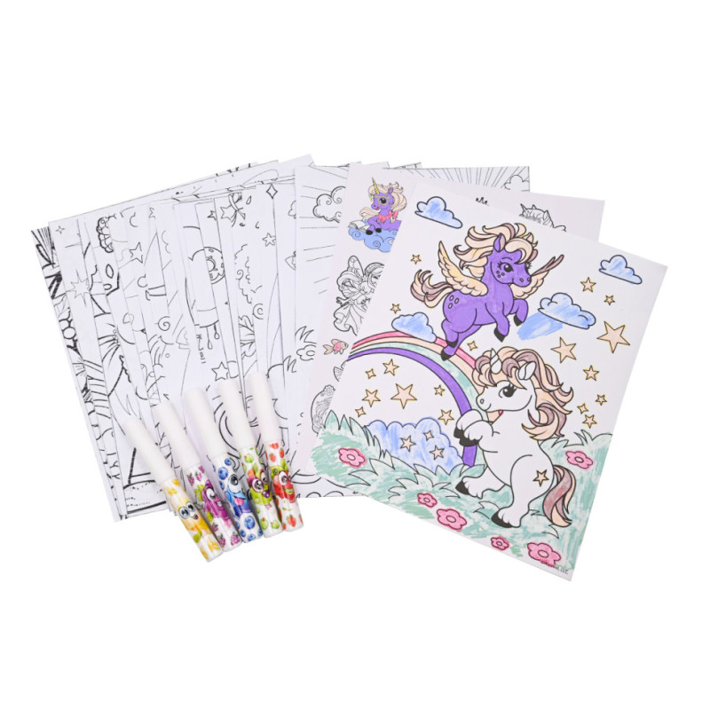 20 розмальовок з єдинорогами та феями.