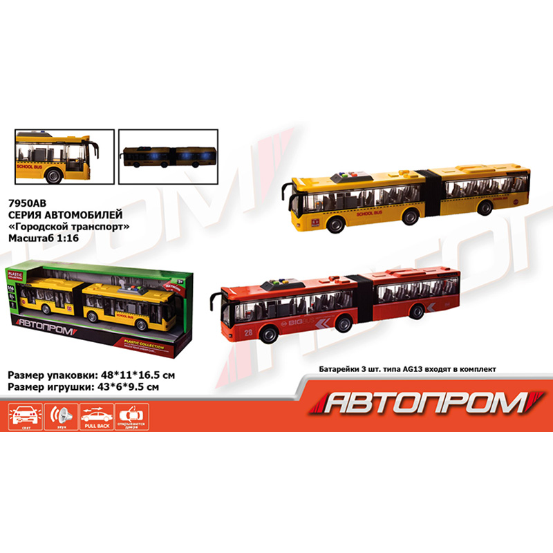 Автобус АВТОПРОМ арт. 7950AB (18шт) батар.2 кольор.світлозвук короб. 48 7950AB