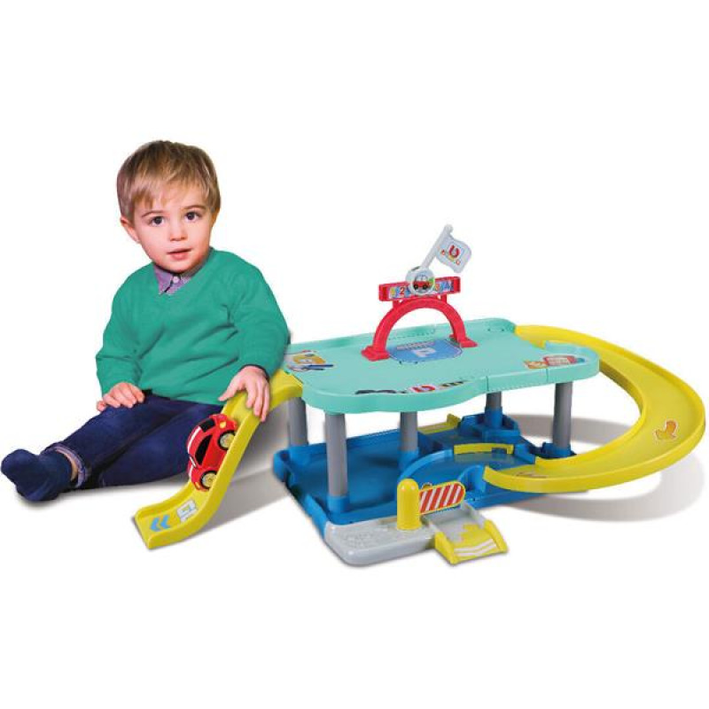 Ігровий набір Bb Junior стане у пригоді юним гонщикам. Тепер ваші машинки матимуть своє місце, а ще зможуть повеселитися на смугах треку. Іграшка обладнана 2 рівнями, на яких є паркомісця, гірки та смуги для катання. Збирайте колекцію машинок та визначайте переможця за допомогою спеціального прапорця. Комплектація: трек-гараж; 1 машинка. Матеріал: якісний барвистий пластик. Розмір гаража у зібраному вигляді: 67 х 38 х 32 см, а машинки - 9 см. Рекомендований вік: від 2-х років.