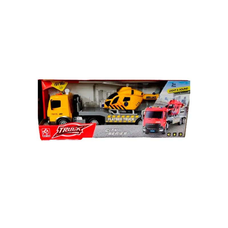 Автовоз з вертольотом інерційний озвучений зі світлом 2кольори в коробц RJ3379_Yellow