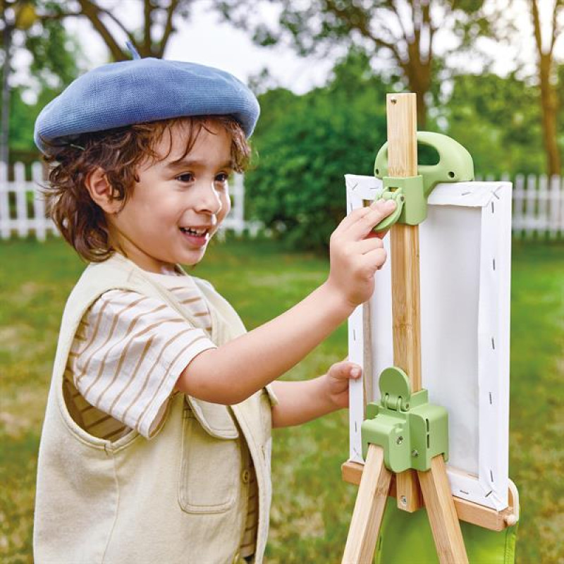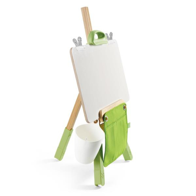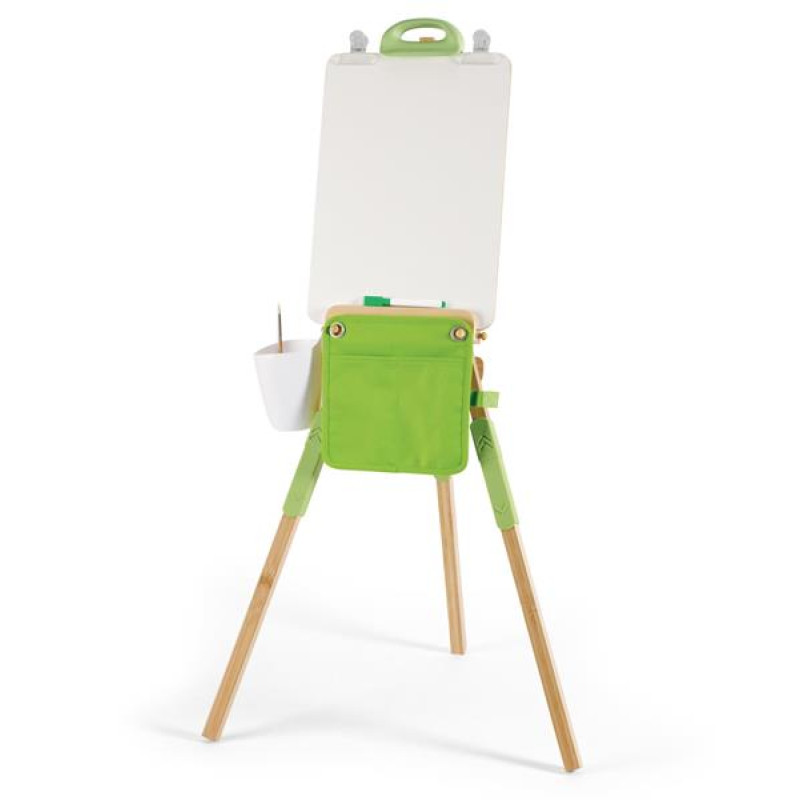 Бамбуковий мольберт Hape портативний - незамінний інструмент для маленьких художників, які завжди у русі. Цей мольберт для малювання, що ідеально підходить для дітей від 4 до 12 років, виготовлений з екологічно чистого бамбука, дерева (FSC) та пластику.У комплект входить все необхідне для мобільної художньої студії: 1 бамбуковий мольберт для малювання, 1 пластиковий стаканчик, 1 навісна сумка з кишенями, пластиковий стаканчик, затискач та інші аксесуари.Портативний мольберт для малювання: підходить для будь-якої пригоди.Бамбуковий мольберт вирізняється своєю універсальністю: він регулюється по висоті та підтримує полотна різних розмірів.Призначений для стимулювання дитячої творчості всюди, від вітальні до парку.Мольберт для малювання легко складати та зберігати.Заохочує творче самовираження та дрібну моторику в юних художників.