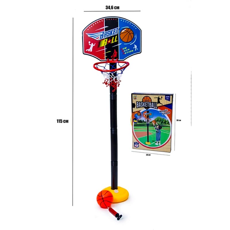 | Комплектація | баск.щіт 34,6х25,2см, стійка 23,5 см, м'яч 10 см,п |