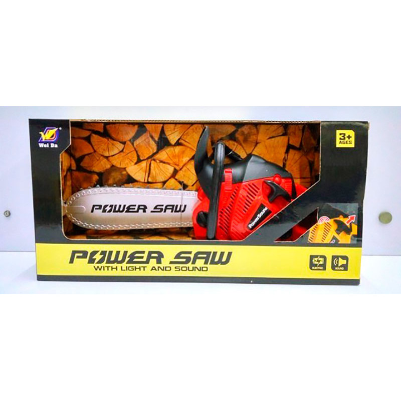 Бензопила дитяча з окулярами - іграшка працює від батарейок, пила має рухоме полотно, містить у наборі окуляри, є світлові та звукові ефекти. Розмір: 42 см.