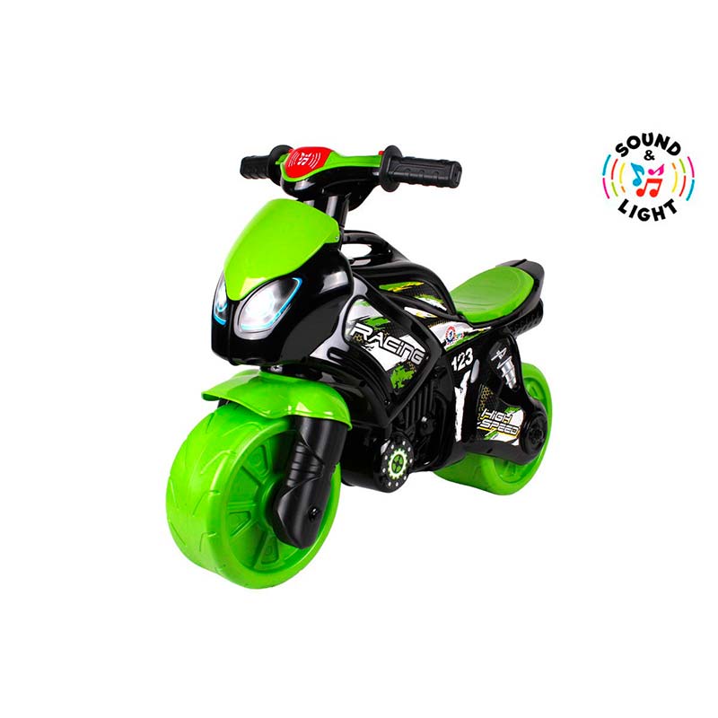 Дитячий біговел мотоцикл музичний чорно-зелений на видувних колесах Технок 6474