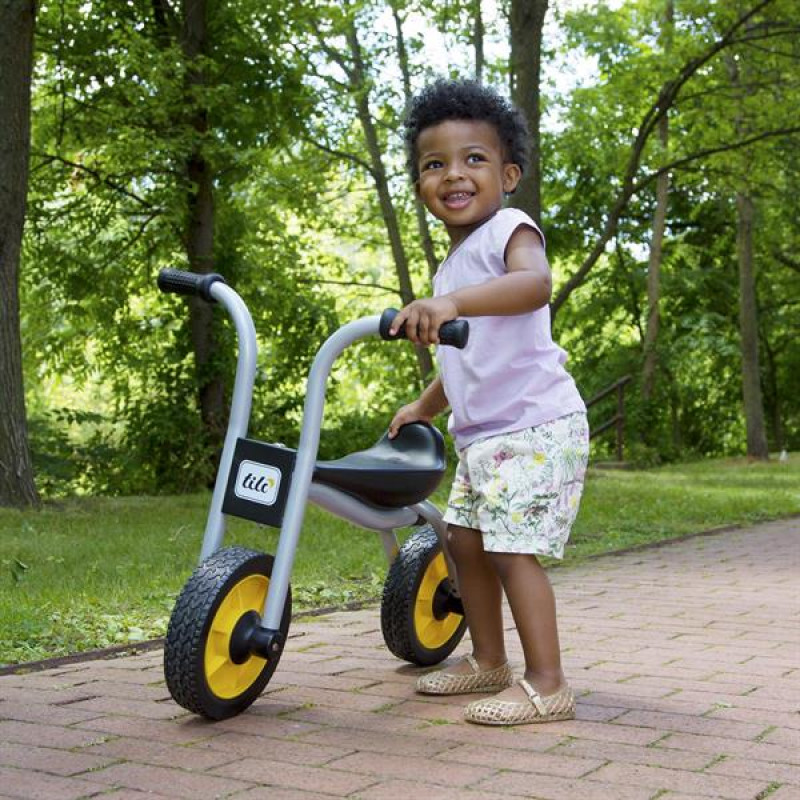 Двоколісний біговел Tilo Баланс підійде дітям віком від 3 до 5 років. Такий тип велосипедів без педалей розвиває у малят уміння тримати баланс і рівновагу. Дитина безпечно розганяється і вчиться керувати велосипедом за допомогою керма. Біговел Tilo стане безпечним проміжним етапом перед тим, як опанувати катання на 'дорослому' педальному велосипеді.Особливості та переваги біговела TiloМатеріал сидіння стійкий до різних погодних умовФорма сидіння трикутна і подовжена, підійде дітям різного зростуПоліуретанові цільні колеса зі сталевими підшипниками їдуть плавно, м'яко і не торохтятьРуків'я виконані з термопластичної гуми, приємні на дотик і не вислизаютьШироке кермо жорстко з'єднане з колесом, що забезпечує стійкість на поворотахГумові запобіжні упори захищають від защемлення і обмежують максимальний поворот кермаБезпека біговела Tilo: ця модель оснащена гумовими упорами від защемлення і максимального повороту керма. Зварна рама міцна і надійна. Кермо жорстко зафіксований відносно колеса. Яскраво-жовті колеса добре видно здалеку. Рама витримує вагу 75 кг.Біговел Tilo відповідає стандартам безпеки ASTM, CPSC, EN71, AU/ NZS і Health Canada.