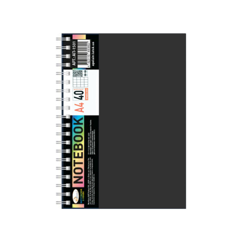 Блокнот А4 АП-1501(Black) 40 аркушів пружина збоку