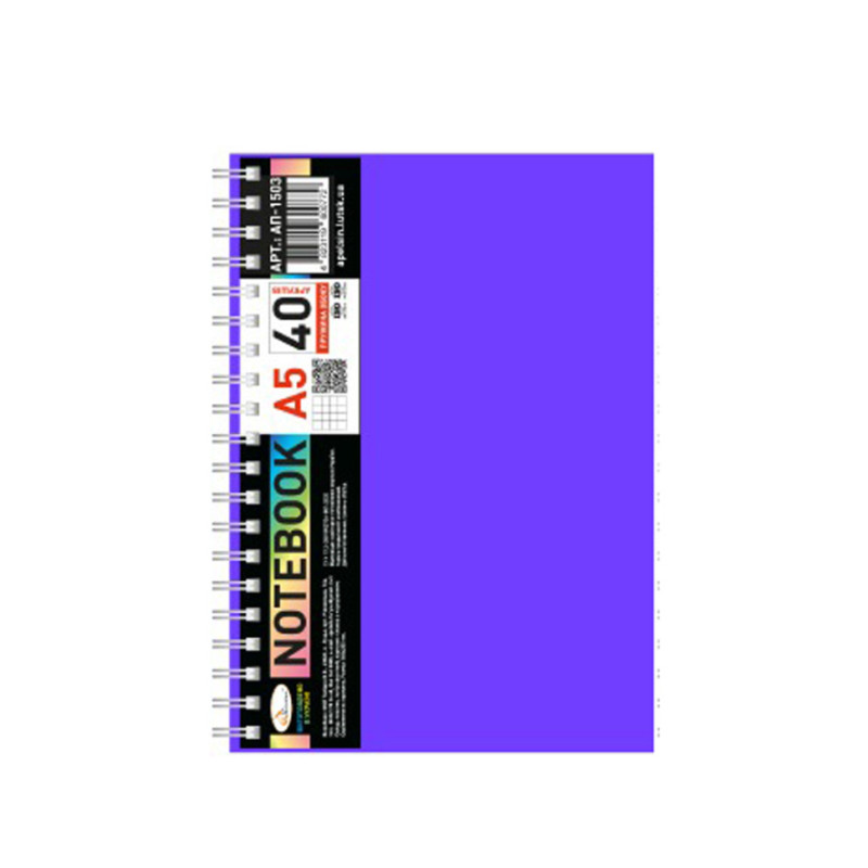 Блокнот А5 АП-1503 (Violet) 40 аркушів пружина збоку