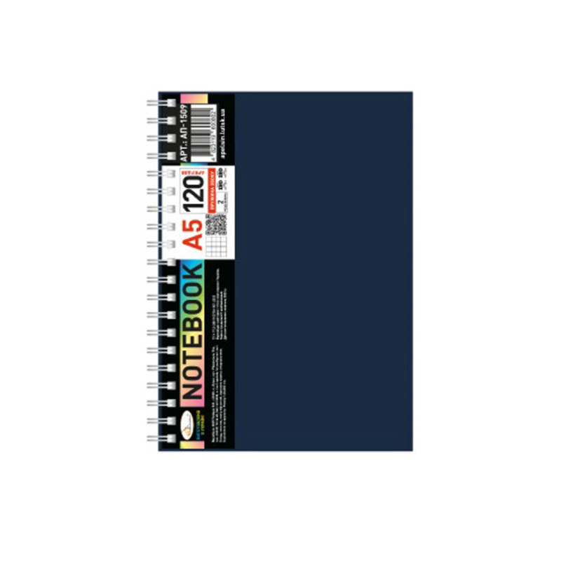 Блокнот А5 АП-1509(Black) 120 аркушів пружина збоку