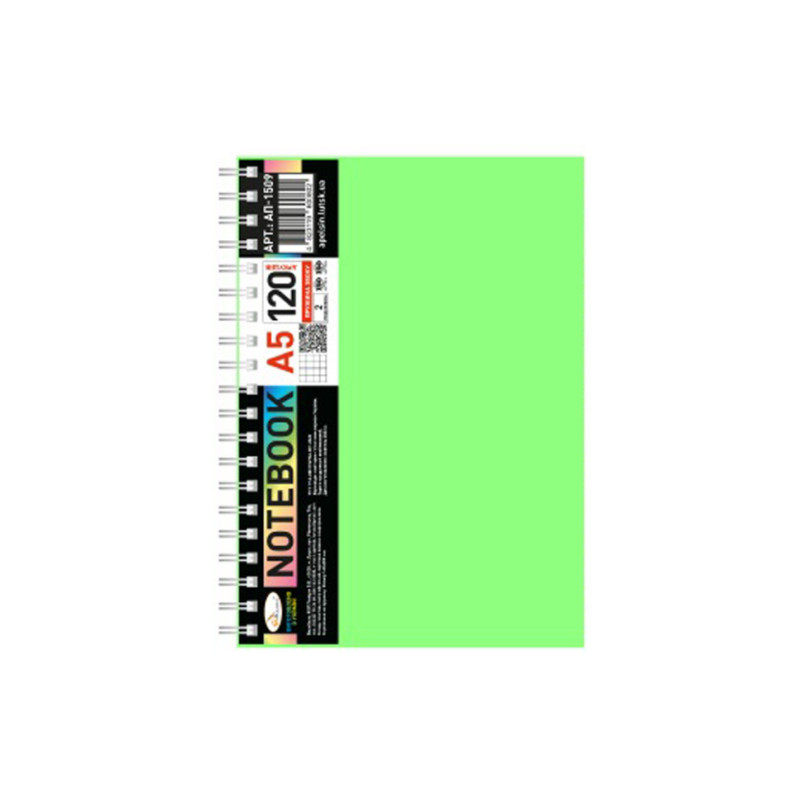 Блокнот А5 АП-1509(Green) 120 аркушів пружина збоку