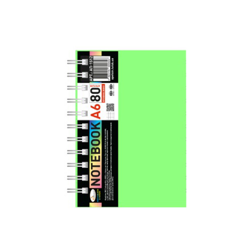 Блокнот А6 АП-1512(Green) 80 аркушів пружина збоку
