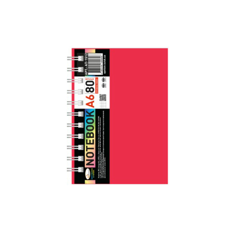 Блокнот А6 АП-1512(Red) 80 аркушів пружина збоку