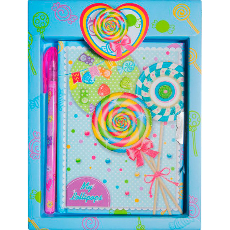 Блокнот дитячий на замочку в подар.коробочці з ручкою 150x110mm, 70g, 56 л, льодяники