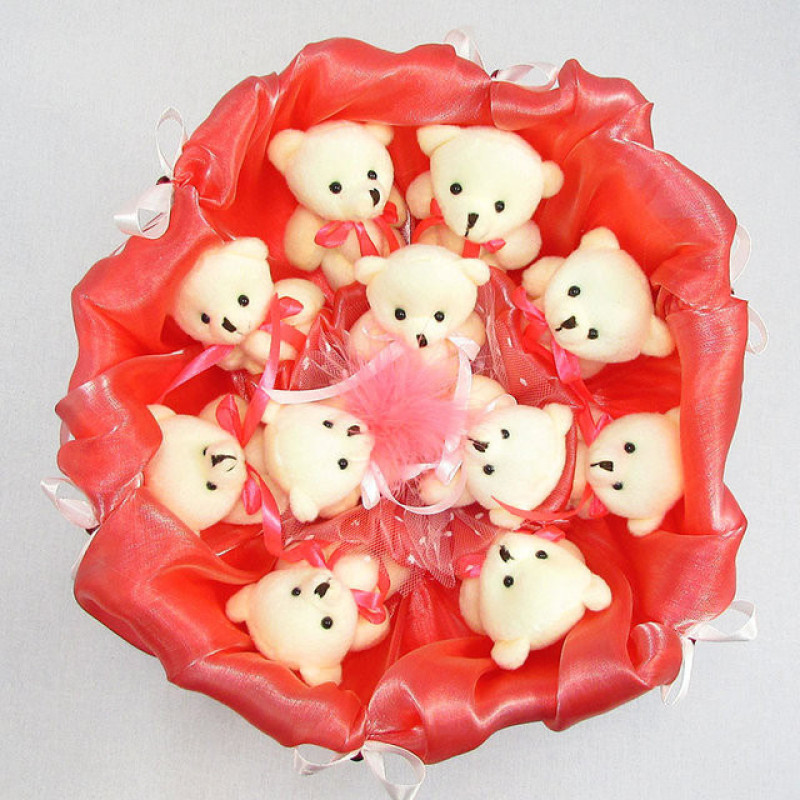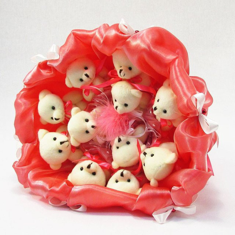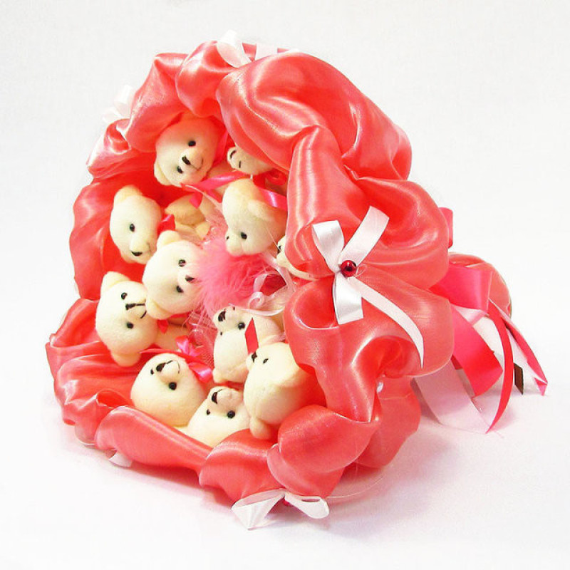 Букет з мяких іграшок 11 ведмедиків 5284IT кораловий