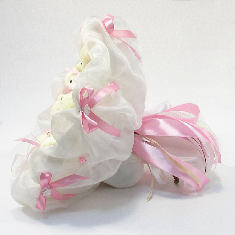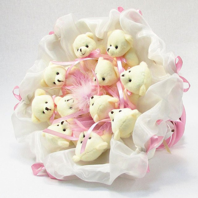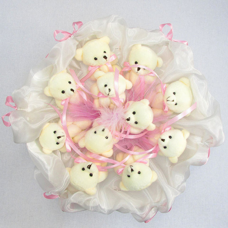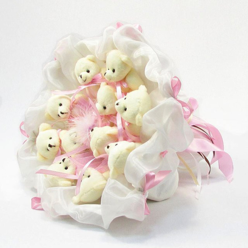 Букет з мяких іграшок 11 ведмедиків 5286IT біло-рожевий