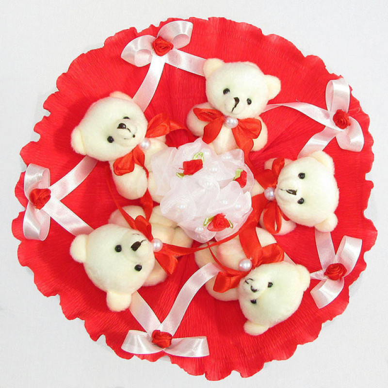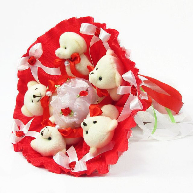 Букет з мяких іграшок 5 ведмедиків 5289IT червоний