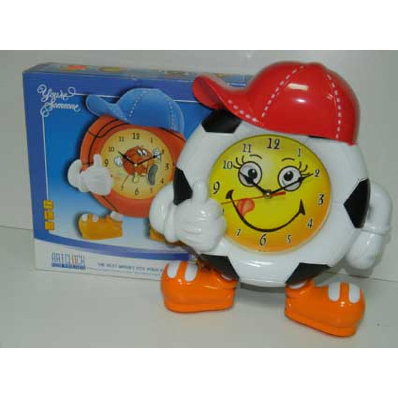 Годинник "Футбольний м'яч" у кепці упаковано в коробку. Цей оригінальний годинник стане справжньою окрасою кімнати для маленького футболіста.