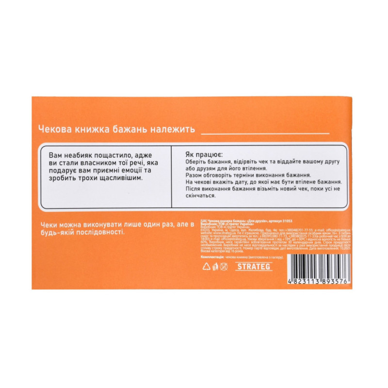 Чекова книжка бажань "Для друзів" 31053 32 чеки українською мовою