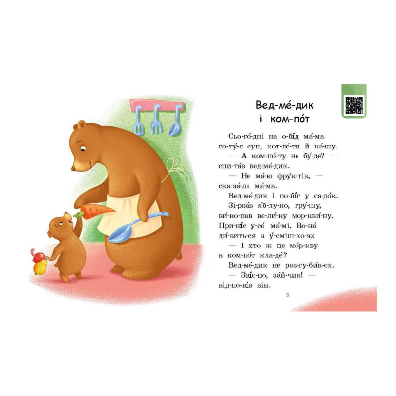 Книжка «Читаємо по складах. Смачна каша» допоможе вашій дитині освоїти навички читання, а короткі веселі історії не втомлять маленького читача. На кожному розгорті ви знайдете одну історію, ілюстрацію до неї та QR-код, перейшовши за яким, можна послухати аудіоверсію історії. Таким чином, дитина спершу навчатиметься читанню способом спостереження за допомогою аудіозапису, а згодом зможе читати самостійно.