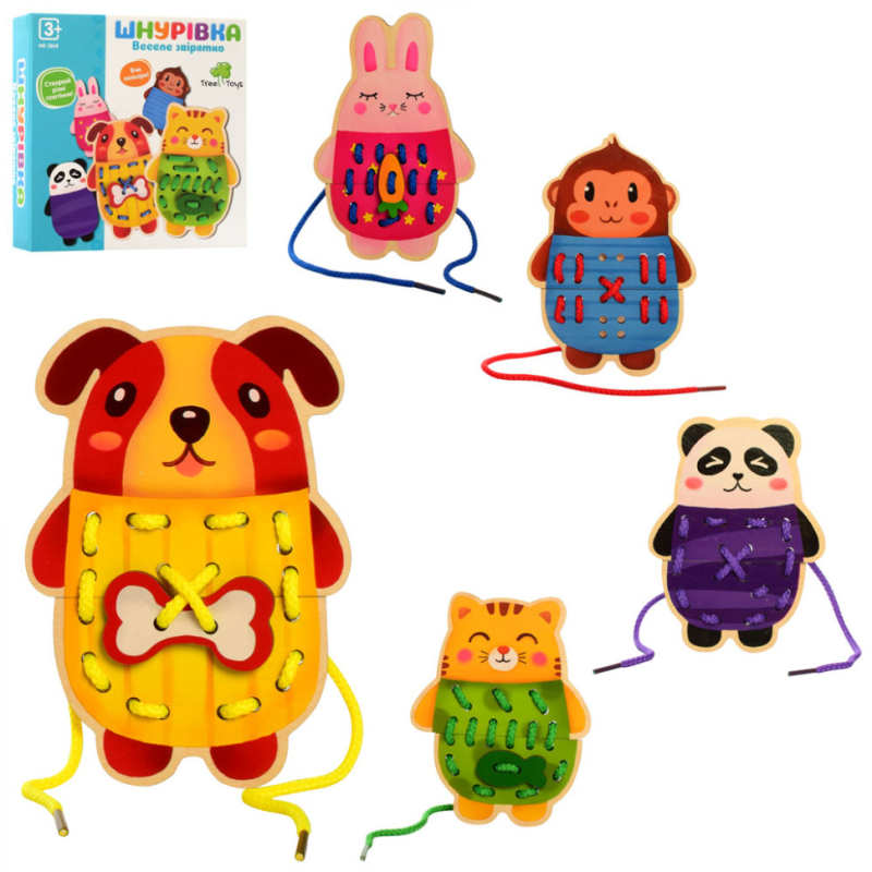Дерев'яна іграшка Шнурівка MD-2849. Шнурівка прискорює розвиток очо-ручної координації та дрібної моторики у рази. Вона вчить малюка уважності, терпінню, сприяє розвитку посидючості. Шнурівка – яскравий приклад того, що проста іграшка, що навчає, може стати для дитини потужним інструментом розвитку. Вона не лише познайомить його з новими квітами та формами, а й значно зміцнить пальчики та кисті рук, підготує їх до письма. У наборі п'ять різних шнурівок у вигляді тварин. Розмір упаковки: 20х20х5 см