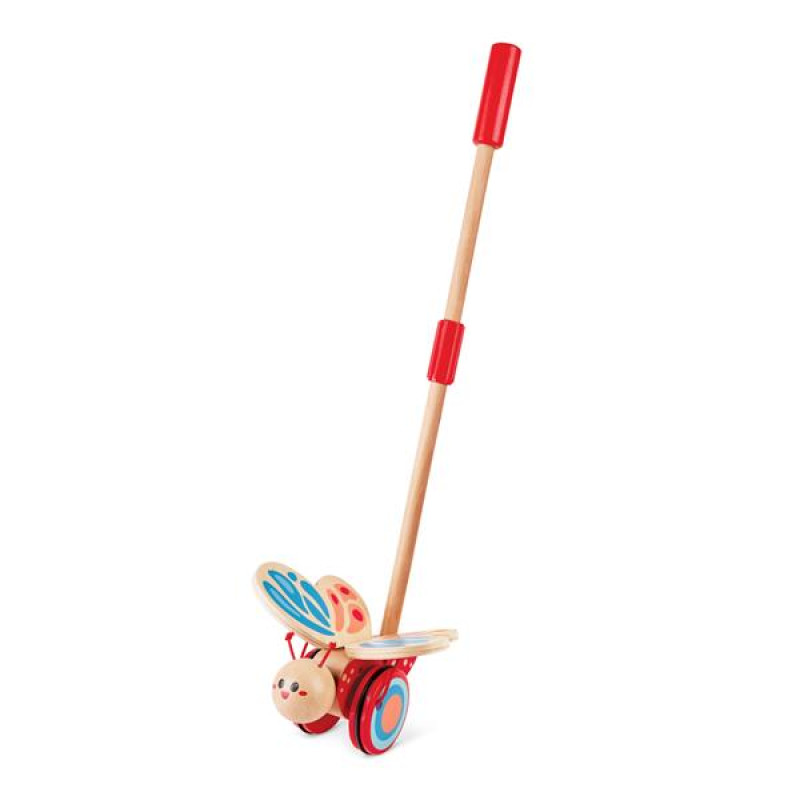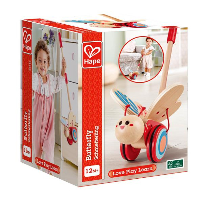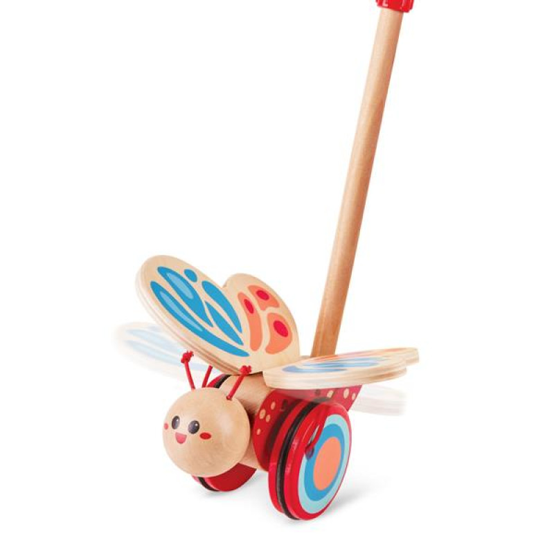 Дерев'яна каталка Hape Метелик - це чудова іграшка, з якою малюкові буде весело вчитися ходити.Каталка стимулює фізичну активність малюка - дитині захочеться ще більше рухатися з різнобарвною іграшкою. Діти покращать координацію рухів, велику моторику, почуття рівноваги.• Іграшка виконана у вигляді доброзичливого метелика з різнокольоровими крилами та вусиками.• Під час руху метелик махатиме крильцями, що неодмінно приведе малюка у захват.• Каталка має ручку.• Колеса метелика мають гумові вставки, які захистять підлогу від подряпин.• Іграшку можна використовувати як удома, так і на вулиці.• Виготовлена із міцного дерева.• Розміри іграшки: 16 x 15 x 57 см.Дерев'яна каталка Hape Метелик створений для хлопчиків і дівчаток від 12 місяців.
