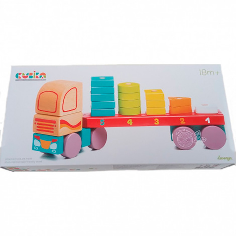 Дерев'яна каталка-тягач із геометричними фігурками 13425