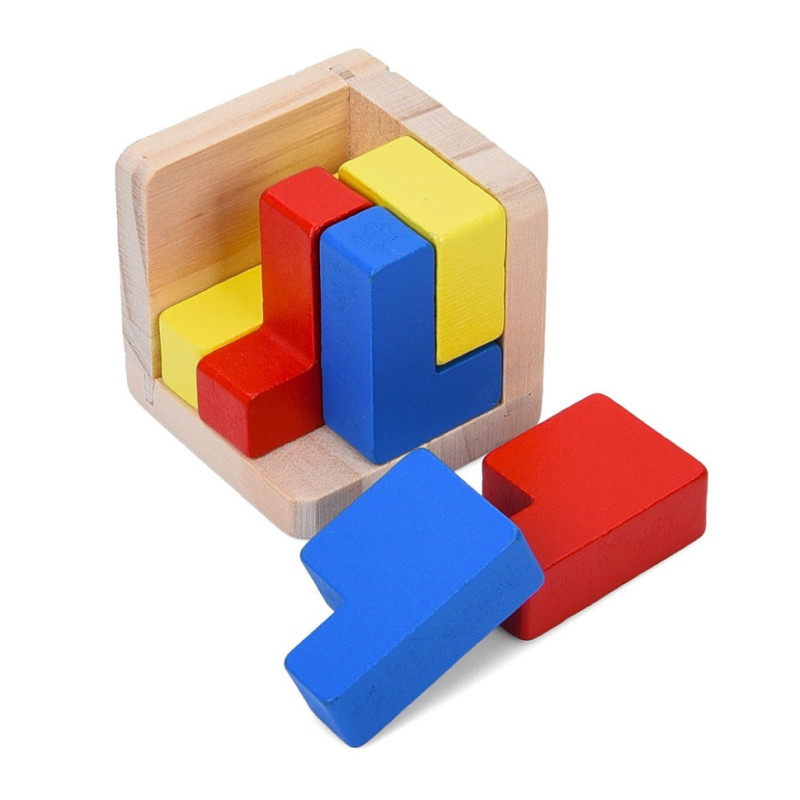 Склад: Набір об'ємних дерев'яних деталей різних кольорів та форм, які необхідно скласти в єдину фігуру (зазвичай куб або іншу задану форму).