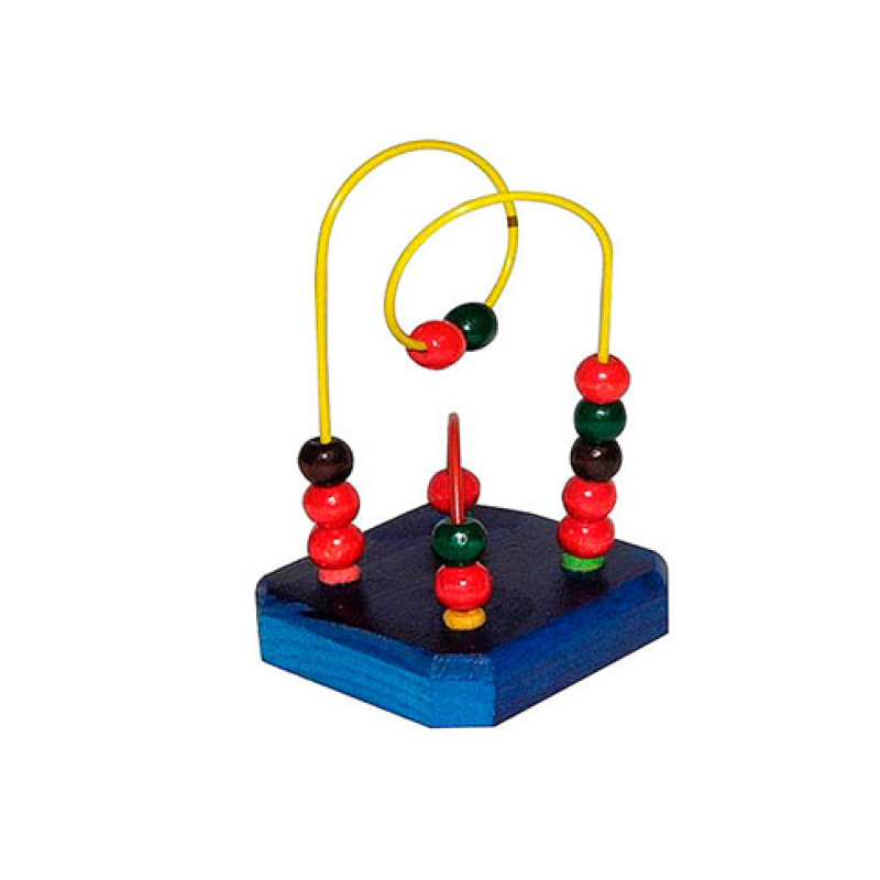 Іграшка призначена для дітей від 3-х років, складається з дерев'яної фарбованої в синій колір платформи-підставки розміром 8 ? 8 ? 2 см - 1 шт., металевих вигнутих фарбованих у жовтий і червоний кольори прутиків завдовжки від 6 см і 18 см - 2 шт., на коротші з них нанизано 5, а на довші 10 дерев'яних фарбованих у червоний і зелений колір фігур кулястої форми. Загальна висота виробу 15 см. Упаковано в термоплівку та якісну гофрокартонну коробку.