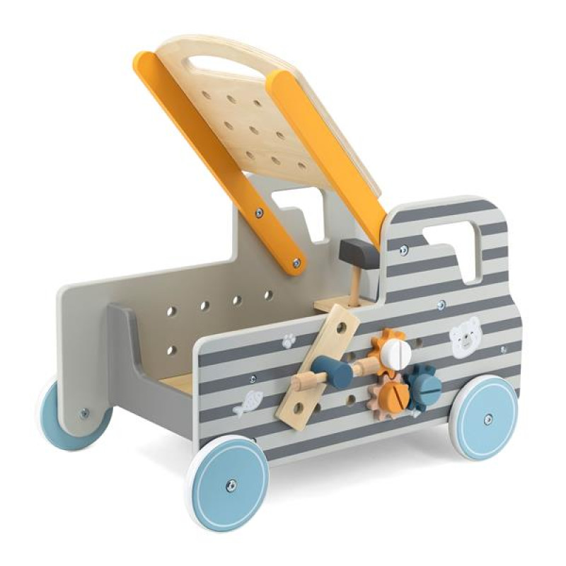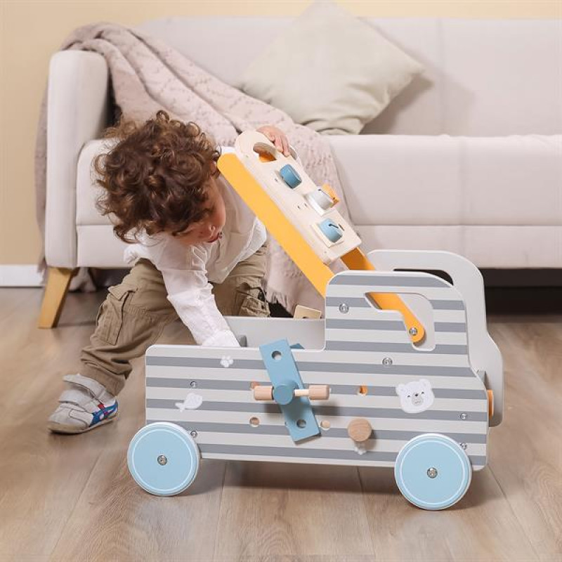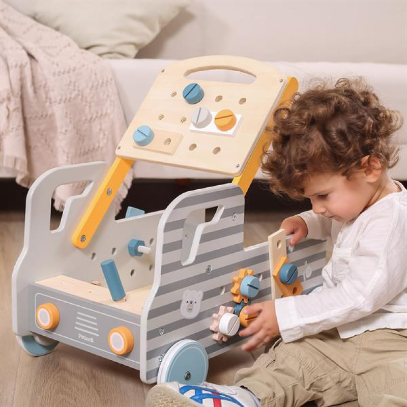 Дерев'яна машинка з інструментами PolarB #8211; безпрограшний подарунок для хлопчика! Це справжня майстерня на колесах.Набір повністю виготовлений із дерева. Можна забивати цвяхи молотком, закручувати шурупи гайковим ключем, пригвинчувати дерев'яні планки та шестерні.Деталі зручно складати в кузові машинки. Ігровий набір особливо зацікавить хлопчиків від 18 місяців до 4 років.Дерев'яна машинка дозволить запам'ятати назви інструментів і навчитися ними користуватися, розвинути дрібну моторику рук, мислення, координацію очі-руки. Вантажівка з інструментами підходить для виховання за реджио-методикою. Ігровий набір рекомендований для корисних ігор у дитячих садках і центрах.Дивлячись на дорослих, хлопчики також хочуть показати свою майстерність, допомогти по господарству. Машинка з інструментами для сюжетних ігор дає можливість дитині приміряти на себе роль слюсаря, столяра чи ремонтника. У нього будуть різнокольорові предмети для вивчення форм, тренування м'язів рук та уяви. Хлопчик дізнається про робітничі професії, вивчить інвентар. Рольові ігри також тренують емоційний інтелект.Усі деталі дитячого набору PolarB зроблені із цільного дерева, що робить їх міцними та довговічними. Дерев'яні інструменти гладенько відшліфовані для зручної гри.Розвивальний набір дерев'яних іграшок PolarB якісний і відповідає стандартам безпеки: європейському EN71, американському ASTM. Розміри: 32 х 47 х 49, вага 2 кг.У комплекті дерев'яна машинка-верстак з інструментами та деталями.