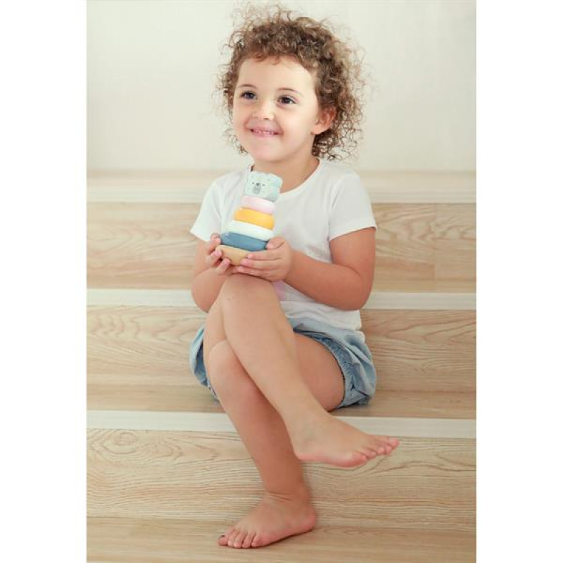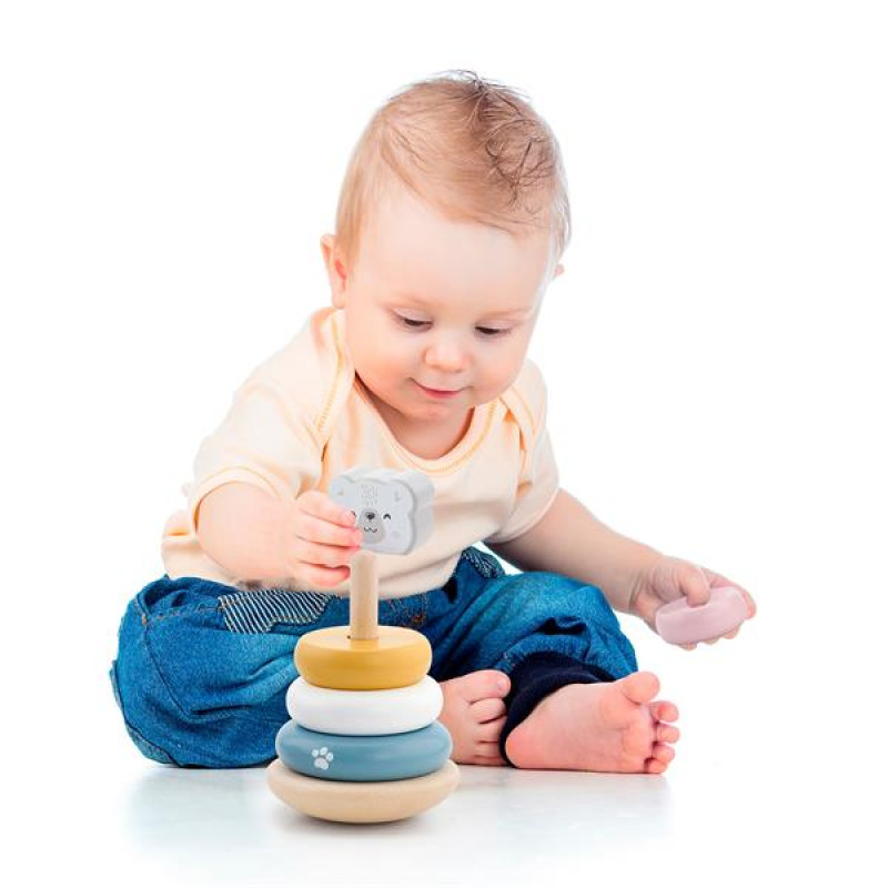 Якою має бути найперша розвиваюча іграшка? Безпечною, гарною, приємною для рук та очей #8211; такою, як пірамідка Білий ведмідь PolarB! Вона виконана за останнім словом дизайну та з першого погляду приваблює м’яким пастельним забарвленням і досконалими формами. Призначена для малюків від 18 місяців.Будова цієї іграшки дуже проста. На закругленій підставці-основі закріплений стрижень, на який нанизані кольорові кільця різних розмірів. Завершує конструкцію верхівка у вигляді милої мордочки ведмедика. Матеріал #8211; ретельно відшліфоване, покрите безпечними фарбами дерево. Із цим ведмедиком дитині буде цікаво пізнавати світ!Усі елементи великі, гладкі, приємні на дотик. Завдяки закругленій дерев’яній підставці пірамідка-неваляшка PolarB Білий ведмідь може гойдатися з боку в бік.Ця дитяча пірамідка чудово поєднується з методикою Монтессорі. Вона відмінно тренує дрібну моторику, покращує координацію рухів, зміцнює дитячі пальчики, допомагає засвоїти поняття більше-менше. Під час взаємодії з натуральним матеріалом #8211; деревом, дитина отримує безліч тактильних відчуттів, вчиться співвідносити розмір деталі з її вагою.