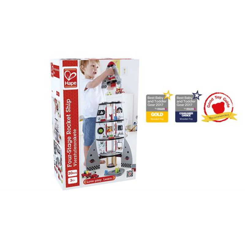 Дерев'яна ракета Hape чотири рівні з аксесуарами (E3021)