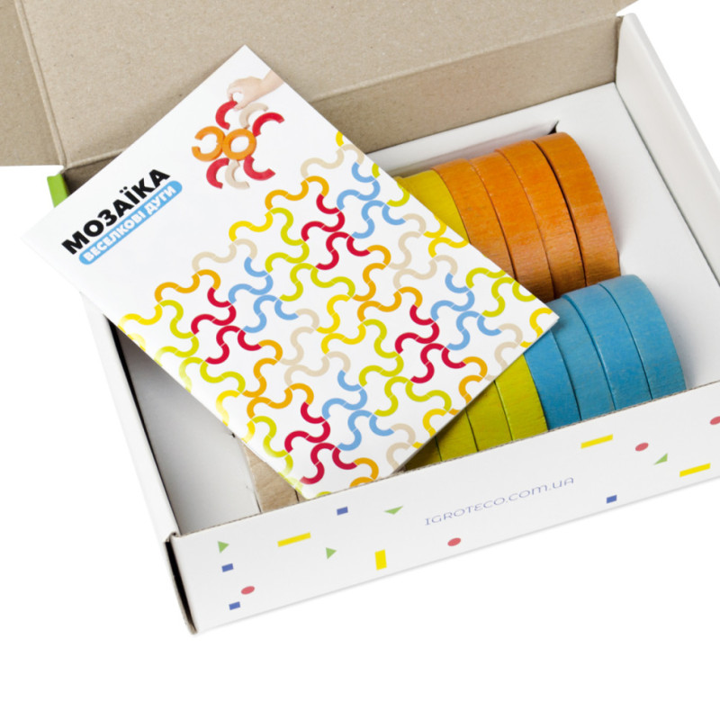 24 цветные полукруга из натурального дерева для создания орнаментов, стилизованных изображений животных, людей, цветов, построения башен, соревнования на баланс.