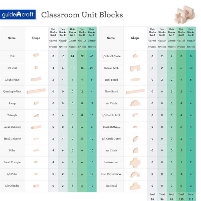 Дерев'яні кубики Guidecraft Unit Blocks Геометричні форми нефарбовані 28 шт. (G2101B)