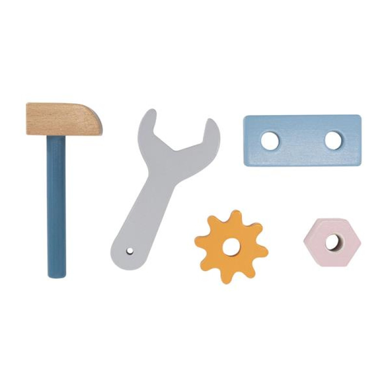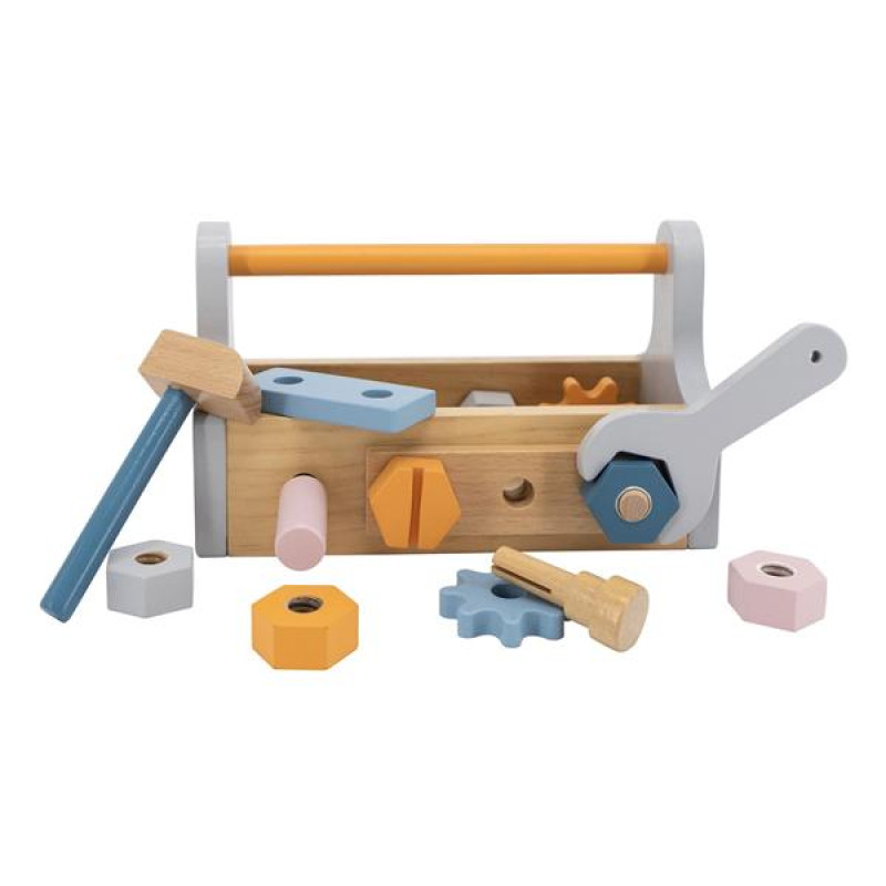 Що робити, якщо дитина 2-3 років тягнеться не до дитячих, а до дорослих інструментів #8211; викруток, молотків, болтів, гайок? Подаруйте їй ігровий набір Інструменти від PolarB. Його комплектації позаздрить будь-який майстер: зручний ящик для перенесення з отворами та ручкою, молоток, викрутка, гайковий ключ, різні планки, болти та гайки.Усі дитячі інструменти виготовляють із дерева високої якості та фарбують у спокійні пастельні кольори. Робочий інвентар гарний, зручний у використанні та, головне, абсолютно безпечний для здоров'я. Деревина гладка, ретельно відшліфована. Усі краї закруглені.Із такою розвиваючою іграшкою дитина стає більш рухливою, активною, впевненою в собі. У неї швидше вдосконалюється координація рухів, зміцнюються м’язи рук, розвивається велика та дрібна моторика.Ігровий набір PolarB Інструменти від сприяє природному розвитку дитини, прояву інтересу до діяльності дорослих і бажання їх наслідувати, пізнанню світу. Комплект чудово поєднується з методиками Реджио та Нікітіних: допомагає зближенню батьків і дітей, вчить домовлятися, ефективно взаємодіяти.