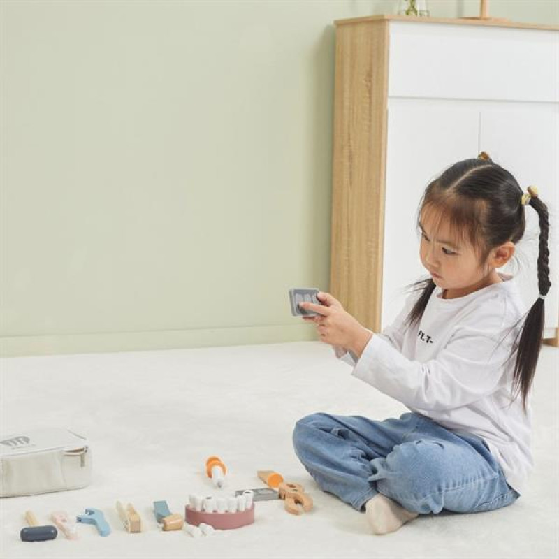 Дерев'яний ігровий набір «Стоматолог» PolarB через рольову гру допоможе дитині позбавитися страху лікування зубів. Відвідування стоматолога стане простішим, щойно вщухне страх перед стоматологічними інструментами.В комплект входять: макет щелепи із зубами, бормашина, шприц, щипці, 2 рентгенівські знімки, стоматологічне дзеркало, молоток, зубна щітка, зубна нитка, тюбик пасти.Особливості:- іграшка від 3 років,- в комплект входить переносна сумка з набором зубів і різними стоматологічними інструментами,- зуби можна видаляти та вставляти нові,- веселощі зменшить страх перед візитом до стоматолога,- іграшки виготовлені з лакованого дерева, вкриті нетоксичними фарбами.Іграшка розвиває:- впевненість у собі,- уяву та креативність.Підходить для гри з дітьми, які бояться стоматологів.Розміри: 22 х 16 х 8 см.