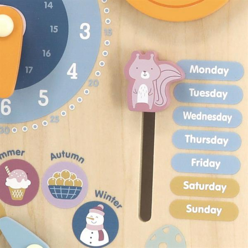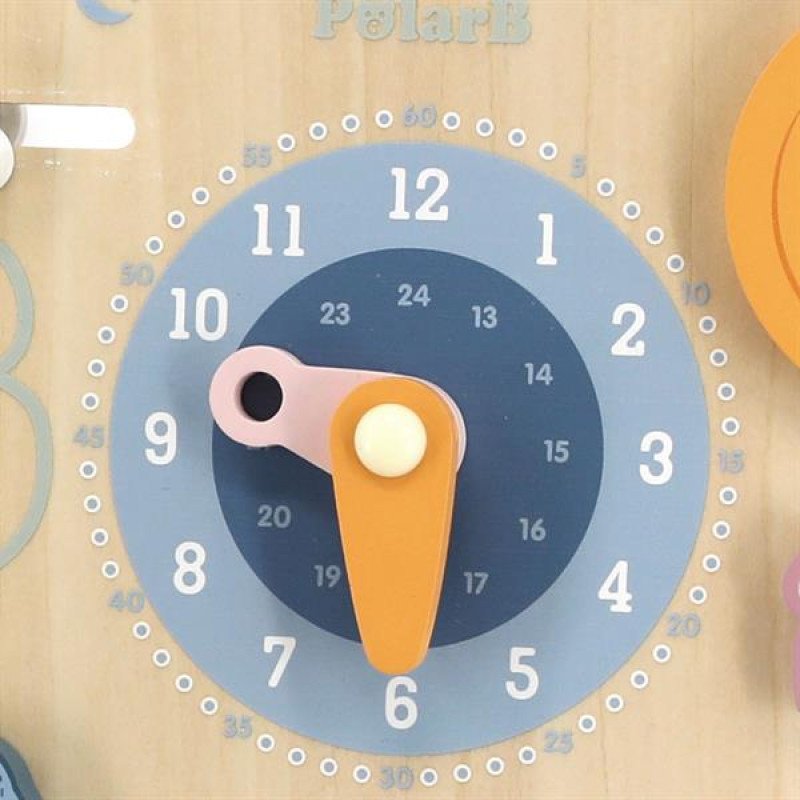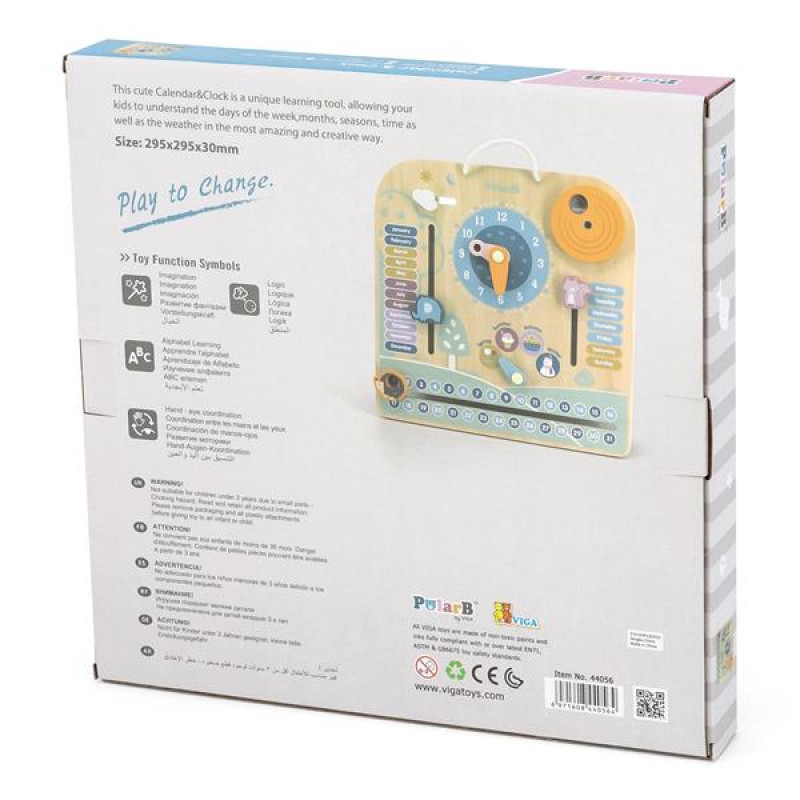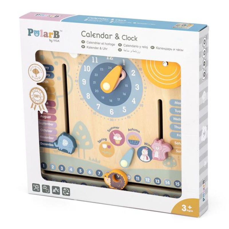 Дерев'яний календар PolarB із годинником на англійській мові #8211; унікальний інструмент навчання малюків від 3 років. Діти будуть розуміти і визначати дні тижня, місяці, сезони, час і погоду.Переставляючи бігунки у вигляді симпатичних звірят по місяцях, днях тижнях і датах, діти розвивають інтелект, пам'ять і стають спостережливими. Рухомі стрілки на годиннику допоможуть навчитися визначати, котра година. Є також шкали з назвами пір року і погоди. Розвивальна гра з навчальним календарем тренує мислення, зокрема абстрактне і логічне, розширює кругозір.Кожен день діти зможуть спостерігати за навколишнім світом і краще дізнаватися його за допомогою календаря PolarB. Набір для навчання представлений англійською, і дитина зможе вивчити назви місяців, днів тижня, пір року, погоди найважливішою міжнародною мовою. Навчальний календар підходить для уроків англійської як наочний матеріал. Рекомендований для занять удома, у дитячому садку, центрі розвитку. Поєднується з педагогікою Монтессорі.Дерев'яна основа 30 х 30 см нефарбована, деталі та написи вкриті безпечними пастельними фарбами. Календар PolarB із закругленими кутами добре відшліфований для комфортних ігор. Його можна розмістити на столі або повісити на стіну #8211; передбачена петелька.Дерев'яний календар PolarB із годинником на англійській мові від відповідає стандартам безпеки та якості дитячих іграшок EN71, ASTM.