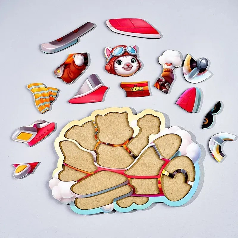Дитяча розвиваюча гра контурний пазл складанка «Котик - пілот»