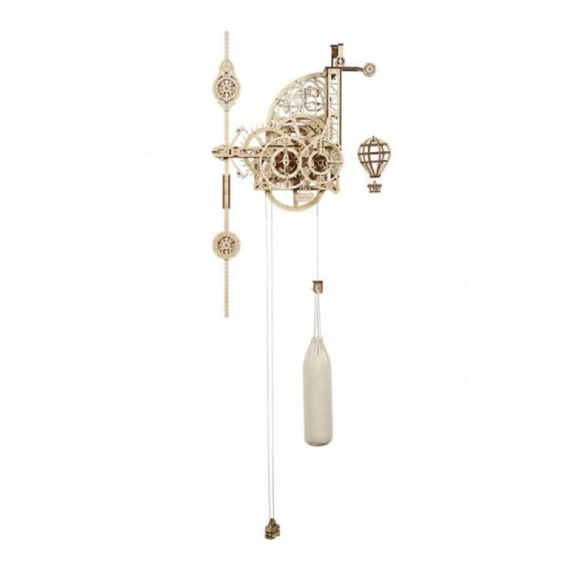 Аеро Годинник - це не просто дерев'яний механічний 3D-конструктор або красивий елемент декору, а справжній робочий годинник, який ви можете самостійно скласти, прикріпити до стіни, завести та спостерігати, як механізм відраховує секунди, хвилини і години. Це чудовий зразок точної інженерії, що демонструє роботу маятникового годинника з тягарцем. Простий та елегантний Аеро Годинник Ugears приводиться в рух гравітацією, що тягне вниз мішок із вантажем (ви можете наповнити його піском або сіллю). Щоб завести годинник, підійміть мішок, потягнувши за шнур із вагонеткою. Повільно опускаючись, мішок обертає провідну шестерню, яка, в свою чергу, обертає через редуктор анкерне колесо. З анкерним колесом взаємодіє якір, закріплений на маятнику з обважнювачами вгорі та внизу. Ви можете налаштувати хід годинника до секунди, регулюючи верхній і нижній обважнювачі маятника. Редуктор також передає обертання на годинний і хвилинний диски. Одна з цікавих особливостей нашого Аеро Годинника - час повідомляють не стрілки, що рухаються циферблатом, а фіксований покажчик, який вказує на цифри на рухомих дисках. Більше того - годинний і хвилинний диски повільно обертаються проти годинникової стрілки. Чи знаєте ви, що до стандартизації одні годинники рухалися за годинниковою стрілкою, а інші - проти? У ролі «зозулі» в Аеро Годиннику Ugears - повітряна куля. Підвішена повітряна куля швидко опускається, коли пробиває чергова година, а потім повільно піднімається вгору протягом наступної години.Розмір моделі: 75*47*16.5 смМаксимальний розмір моделі: 220*470*16.5 смКількість деталей : 320Розрахунковий час складання : 11 годинРівень складності : Підвищений
