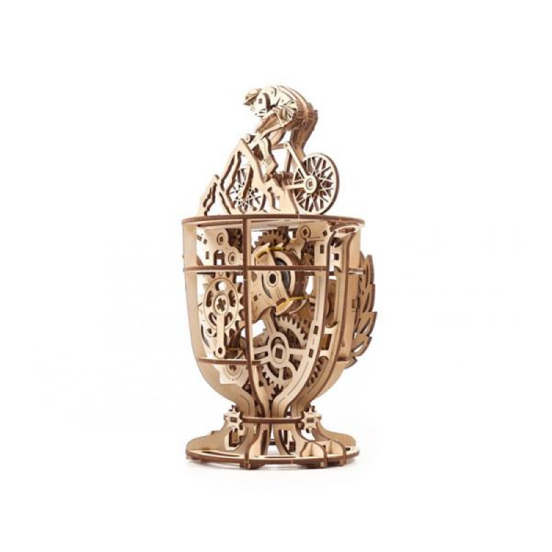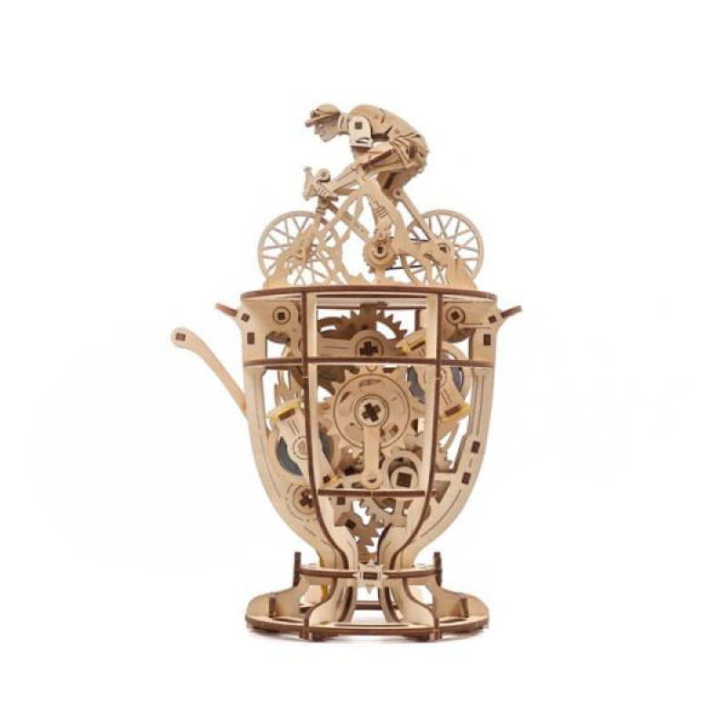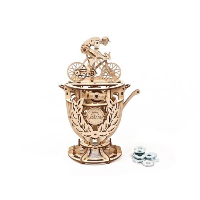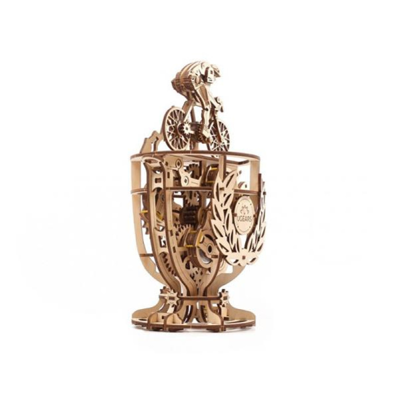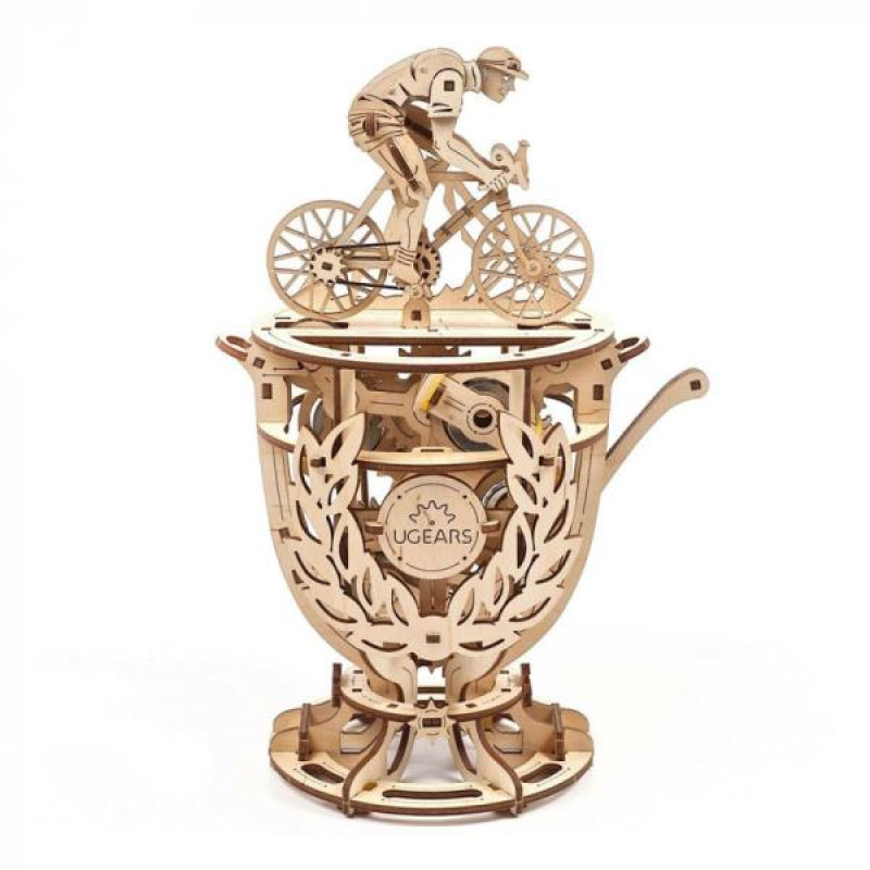 Ugears представляє поповнення у своєму сімействі автоматонів - механічний конструктор із дерева «Велосипедист». Цей 3D-пазл у вигляді стильного кубка створений для справжніх чемпіонів. Велосипедист на верхівці моделі мчить уперед, щоби привести вас до нових перемог.Ugears славиться виготовленням 3D-конструкторів із дерева, що рухаються без дротів або батарейок, і цього разу наші дизайнери використали простий маховик для створення магії руху. Заведіть автоматон, потягнувши за важіль збоку механічного пазла, і спостерігайте, як велосипедист розпочинає перегони. Маховик, головний рушійний елемент цього 3D-конструктора, накопичує кінетичну енергію і приводить його в рух. Автоматон «Велосипедист» ідеально демонструє, як збільшення або зменшення ваги змінює роботу маховика - механічна модель має спеціальний отвір, куди можна покласти монету, гайку або іншу дрібну річ для збільшення ваги та зміни імпульсу механізму.Як і всі конструктори Ugears, Автоматон «Велосипедист» виготовлено з якісної деревини, а в комплекті є все необхідне для складання. Дотримуйтеся детальної покрокової інструкції, перекладеної 11 мовами, і ви легко дістанетеся фінішу.Розмір моделі: 24.5*17.5*12 смКількість деталей : 189Розрахунковий час складання : 4 годиниРівень складності : Середній